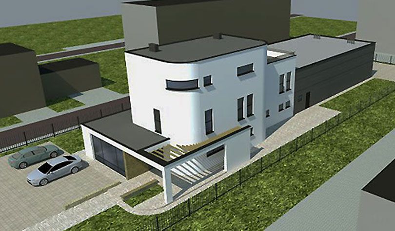 Projekt siedziby Amber Bridge – budynek biurowy wraz z częścią szkoleniową i magazynową.